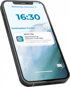 In prossimità del punto vendita una notifica avvisa il cliente della presenza di una rete Wi-Fi sicura.
